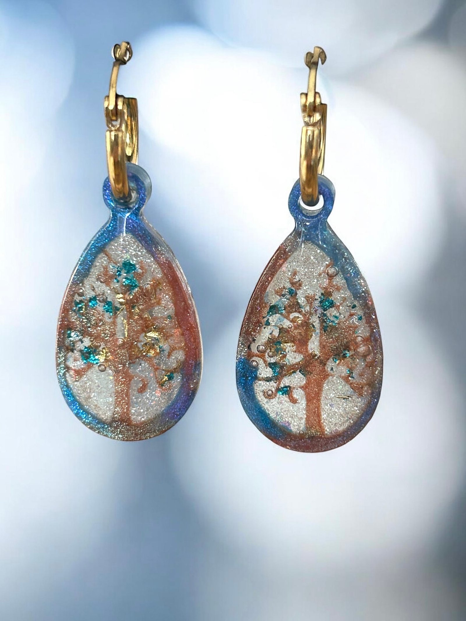 Boucles d’oreille en forme de larme, motif arbre de vie, couleur multicolore