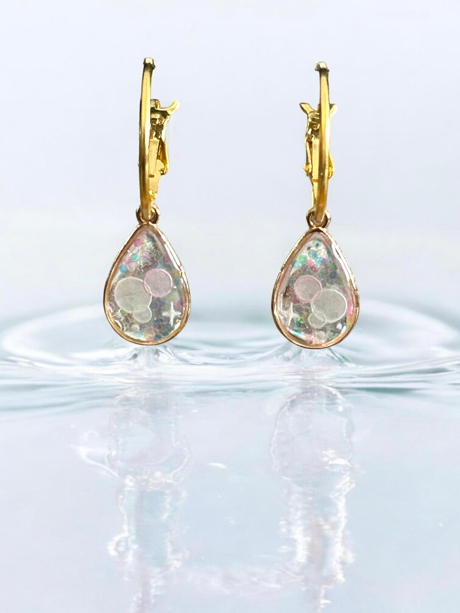 Boucles d’oreille en forme de goutte, motif bulles, couleur rose multicolore