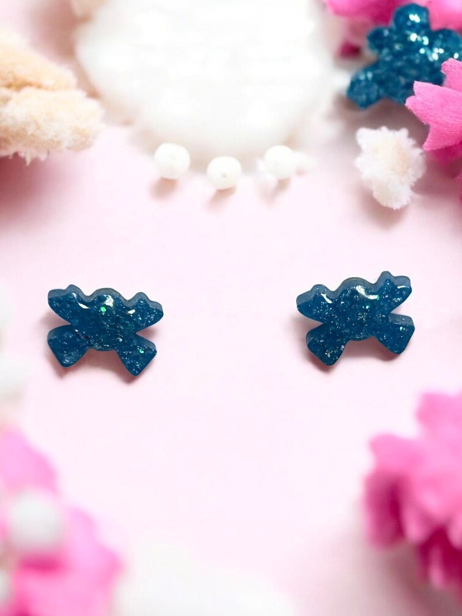 Boucles d’oreilles puces en forme de flot, couleur bleu