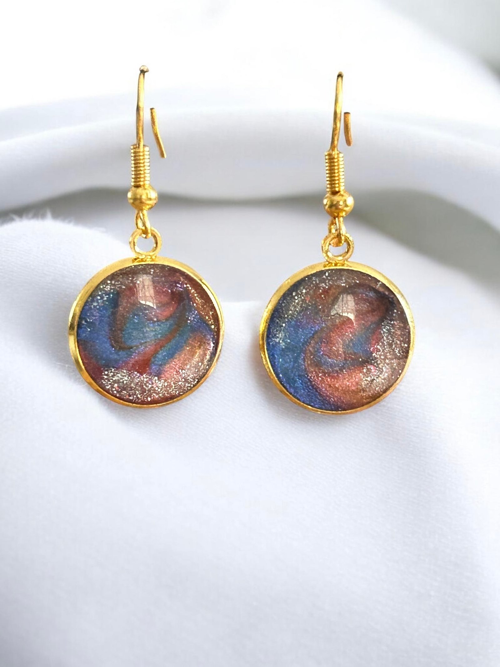 Boucles d’oreilles en forme de rond, couleur galaxie multicolore