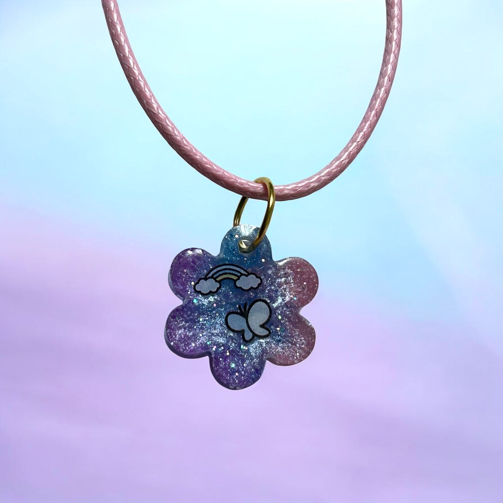 Collier en forme de fleur, motif papillon et arc en ciel, couleur multicolore