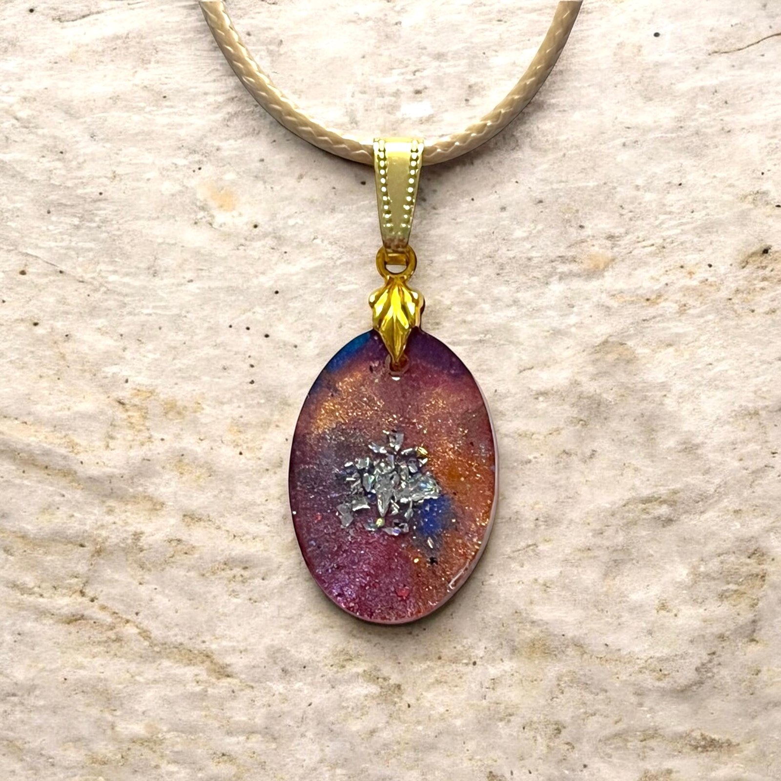 Collier ovale rose pailleté