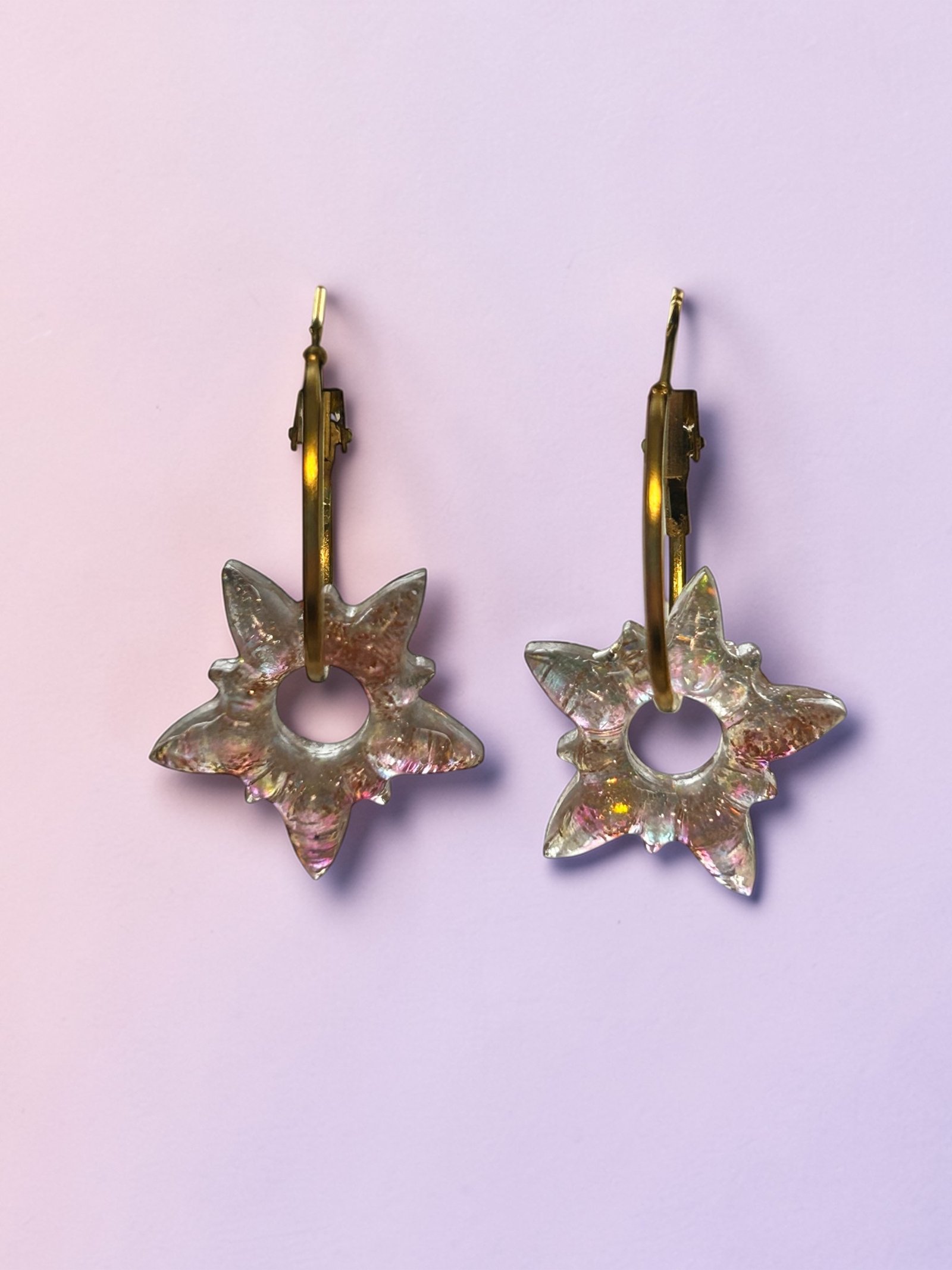 Pampilles mesurant 2 cm en forme d’étoile, couleur pailleté holographique effet rose beige